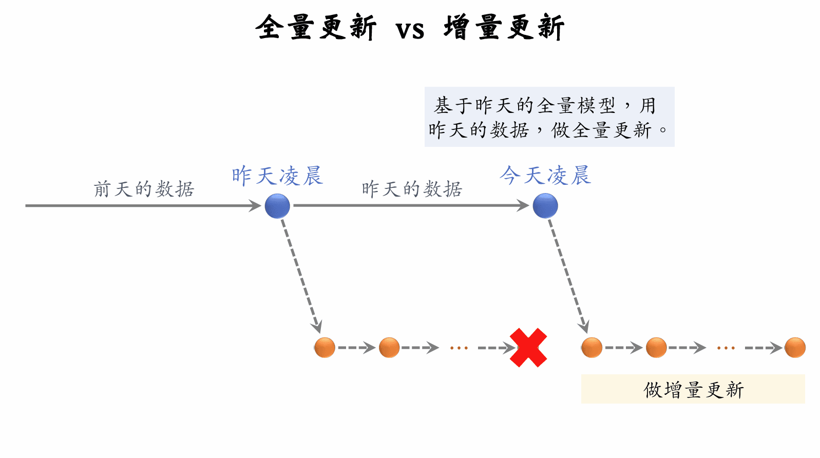 • 每天凌晨,用全体用户数据更新主模型。